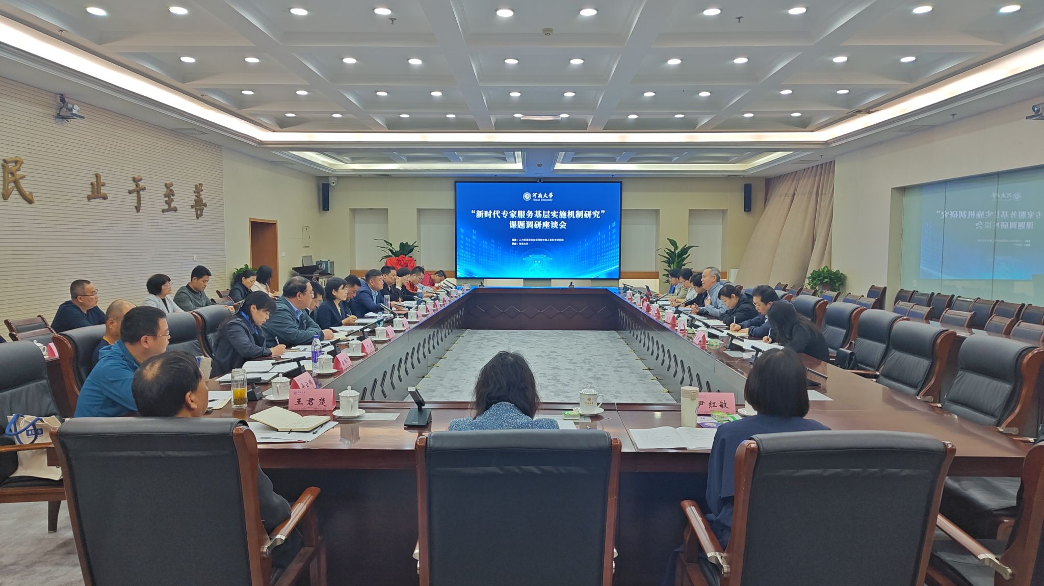 10月19日,由人力资源和社会保障部中国人事科学研究院主办,我校承办的“新时代专家服务基层实施机制研究”课题调研座谈会在金明校区举办,9家人社部设立的专家服务基地负责人参加座谈会。人力资源和社会保障部留学人员和专家服务中心副主任李璟,河南省人力资源和社会保障厅副厅长、一级巡视员李海龙,河南大学副校长张立新,人才人事部、生命科学学院相关负责同志出席会议。