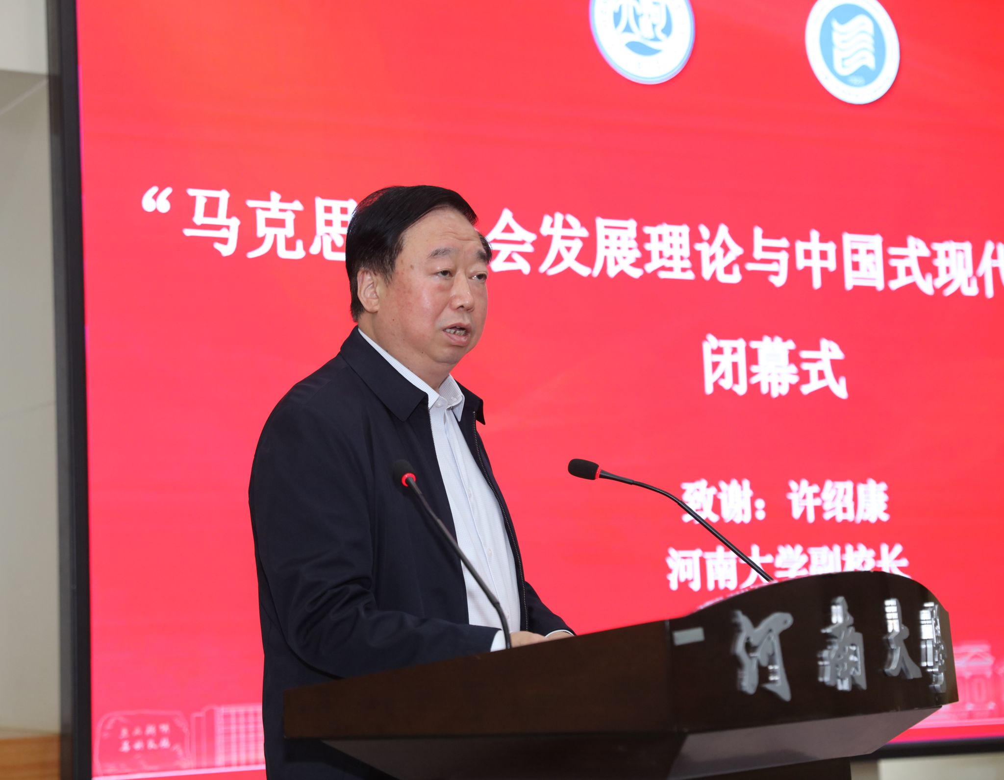 闭幕式由中国马克思主义哲学史学会副会长丁立群教授主持。郝立新对论坛内容作总结。他认为,本次论坛是一场“三高”论坛——研讨主题水平高、与会代表学问高、发言内容水准高,在方法论、中国化、哲学思维等方面推进了马克思社会发展理论与中国式现代化的研究。许绍康致闭幕辞。他向论坛的召开表示祝贺,向与会专家学者的到来表示感谢,并希望与会专家学者对河南大学及哲学学科的建设和发展提供宝贵的意见和建议。