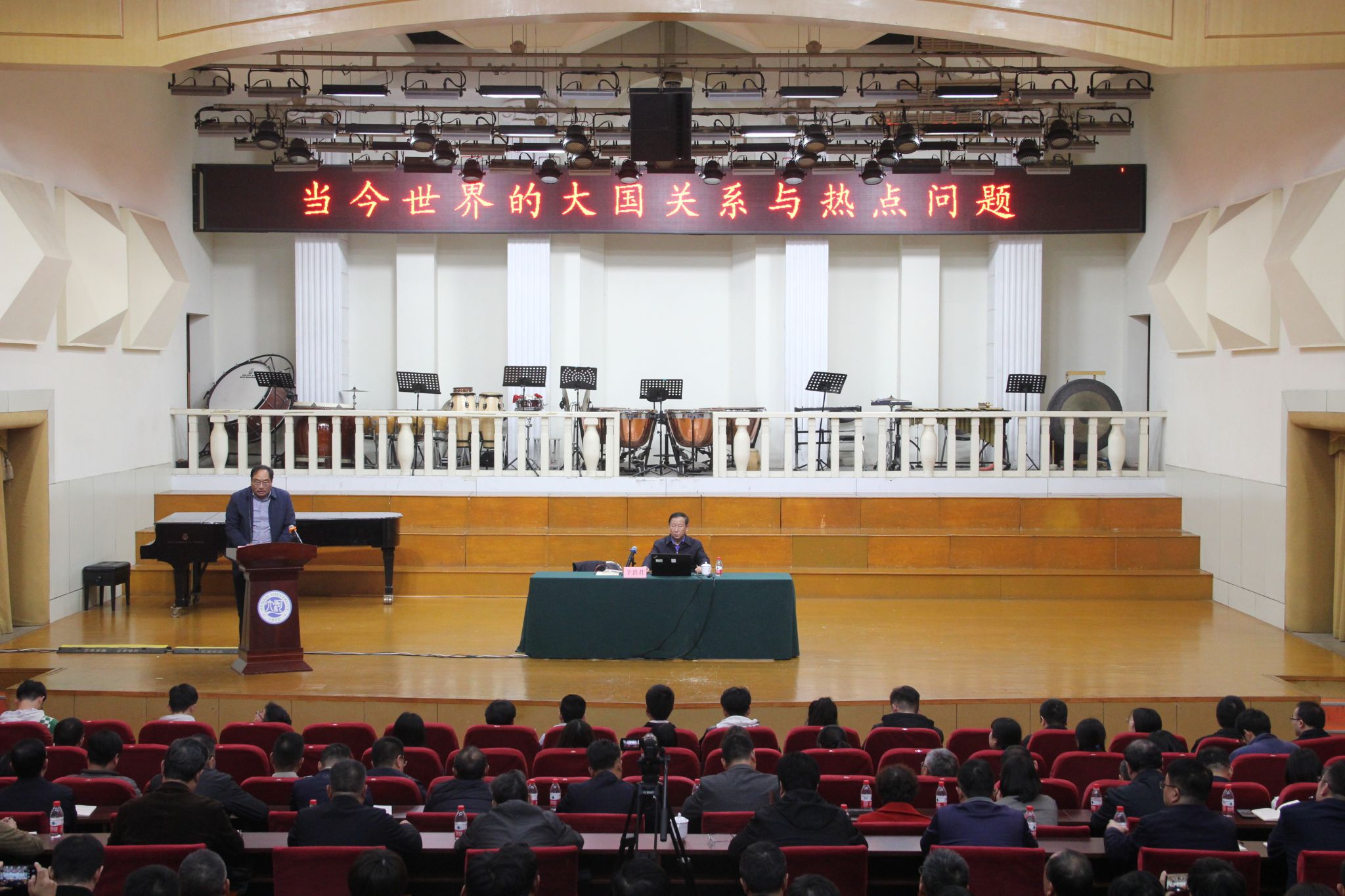 11月9日下午,学校在音乐学院音乐厅召开校党委理论学习中心组(扩大)专题学习会,深入学习习近平外交思想,并邀请中共中央对外联络部原副部长于洪君教授作专题辅导报告。参会的有在校校领导、两委委员、中层正职干部、师生代表等。会议由校党委常委、副校长孙君健主持。