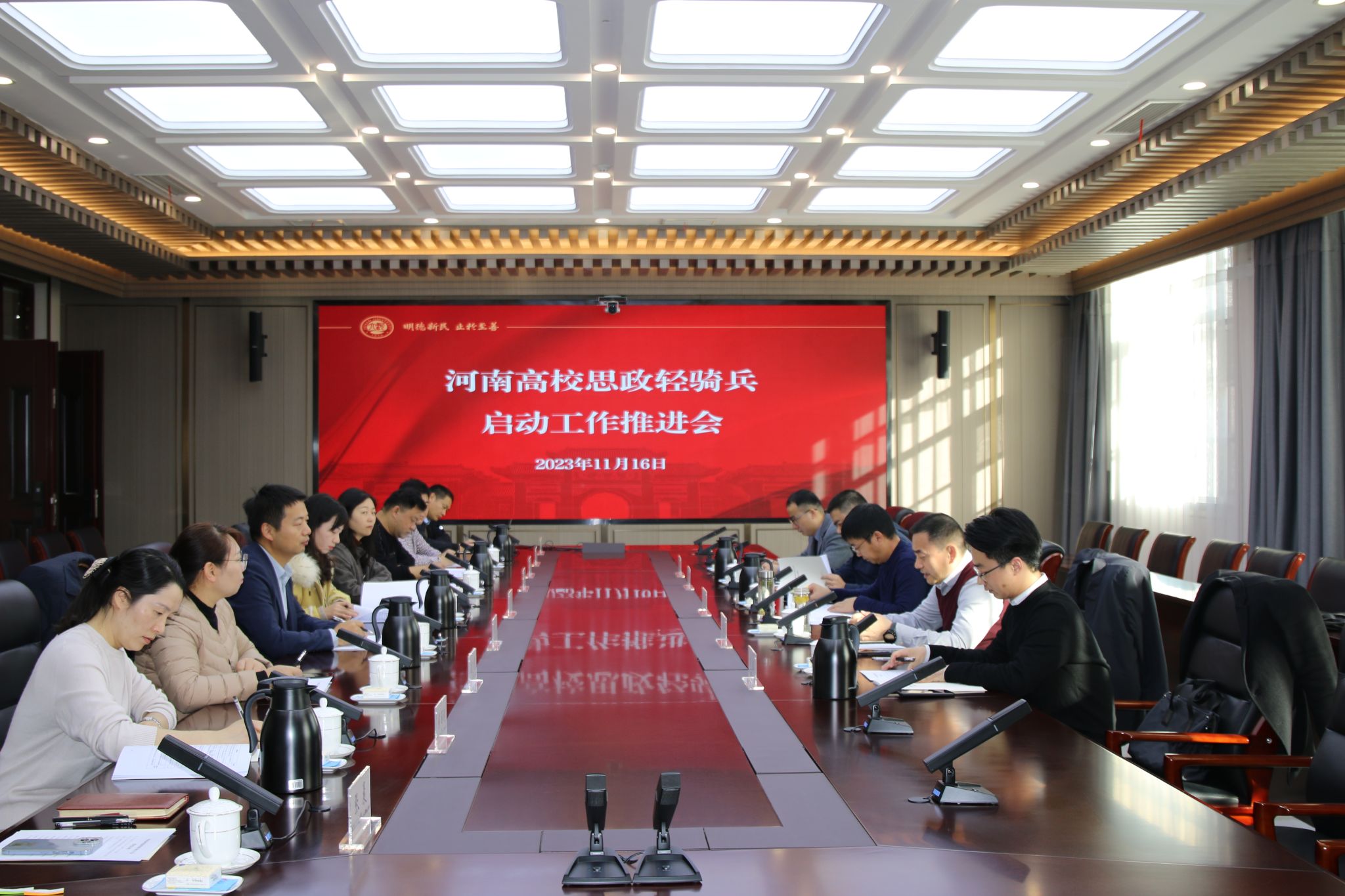 11月16日上午,河南思政轻骑兵启动工作推进会在我校郑州校区友兰学堂中楼305会议室举行。省教育厅思政处处长陈凯,河南省教育融媒体运营中心、河南大学、河南农业大学、河南中医药大学、郑州航空工业管理学院等相关人员参加会议,会议由省教育厅思政处副处长任龙云主持。