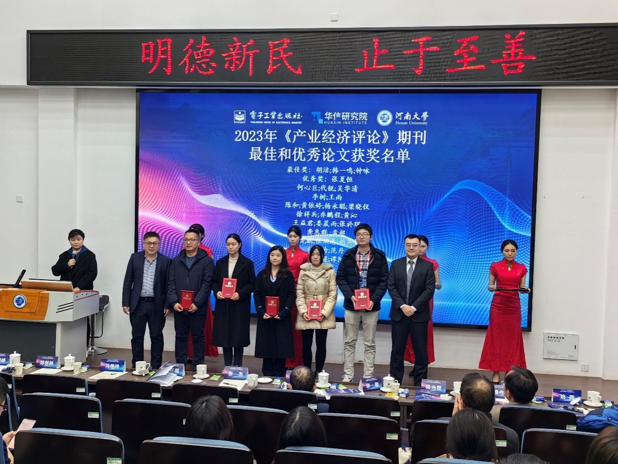 大会前夕,在电子工业出版社和《产业经济评论》论文评审委员会的专家学者们鼎力支持下,遵循客观公正的评审原则,评选出2023年《产业经济评论》最佳论文奖1篇和优秀论文奖11篇,评选出第十届中国产业经济研究学术年会优秀论文一等奖1篇、二等奖3篇和三等奖8篇。其中,中国社会科学院胡洁、韩一鸣、钟咏等三位学者发表的《企业数字化转型如何影响企业ESG表现——来自中国上市公司的证据》一文获得2023年《产业经济评论》最佳论文奖,武汉大学李旭超、刘华珂、宋敏三位学者合著的《知识产权人才供给与企业创新》一文获得第十届中国产业经济研究学术年会优秀论文一等奖。在闭幕式上,与会专家为获得奖项的代表颁发了证书。