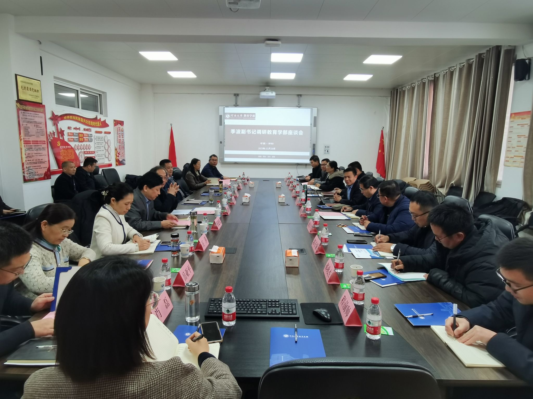12月20日下午,为进一步了解教育学部学科建设推进情况,校党委副书记季波一行到教育学部调研座谈,校党委办公室、党委组织部、学科建设处、教务处、人才人事部、人文社科研究院、研究生院、信息化管理办公室等相关部门负责人参加调研。座谈会由教育学部党委常务副书记蔡建东主持。
