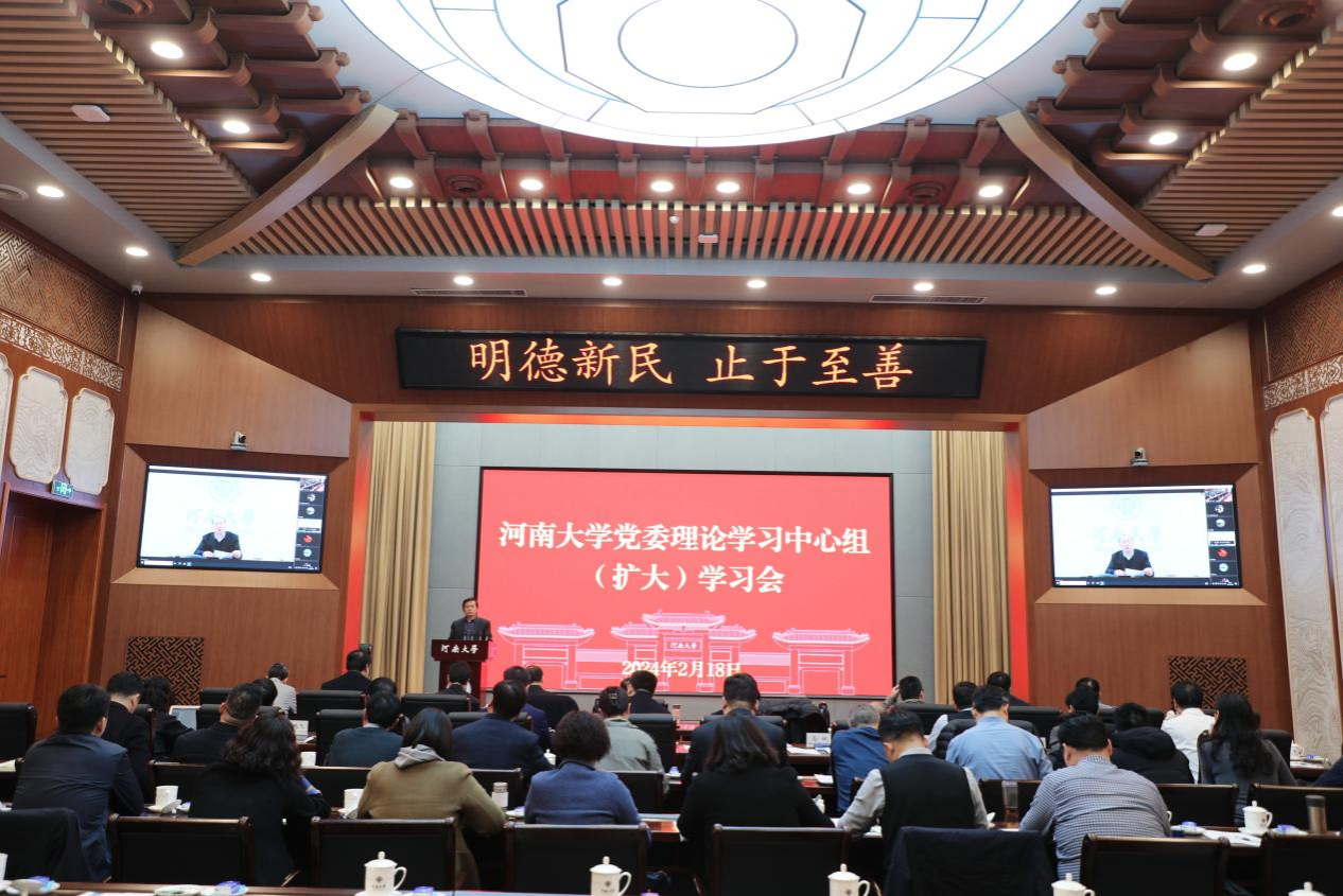 校长张锁江院士在讲话中指出,习近平总书记在中共中央政治局第十一次集体学习时强调,要加快发展新质生产力,扎实推进高质量发展,为高校发展指明了道路和方向。我们一是要学深悟透、融会贯通系列讲话精神,全面加强党的领导和党的建设,落实好党委领导下的校长负责制,牢记高质量发展是新时代的硬道理,通过科技自立自强,构建新发展格局,贯彻新发展理念,努力实现学校高质量发展;二是要面向国家和未来需求,基于学校发展实际和战略定位,尊重教育科研规律,脚踏实地、实事求是推动学校创新发展。今年要从加强一流学科建设、布局新工科、夯实人才基础、建强团队平台、拓展经费渠道、创新体制机制等六个方面重点着力,精心谋划工作;三是要切实加强创新文化建设,发扬文化创新精神。要牢记“明德新民,止于至善”的河大校训,弘扬“自信、拼搏、开放、创新”的新河大精神,坚决摒弃惯性思维,敢想敢干敢试,发现机会、争取机会、抓住机会,着力打造公平公正、奋发向上、团结协作的“大气候”。
