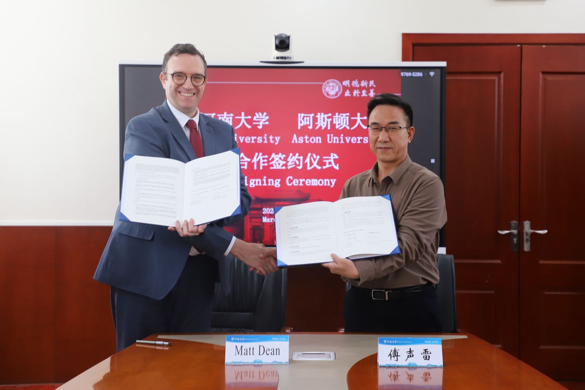 3月21日下午,河南大学与英国阿斯顿大学战略合作协议签约仪式在明伦校区国际合作与交流处会议室举行。河南大学副校长傅声雷、英国阿斯顿大学国际执行董事Matt Dean出席此次签约仪式,国际合作与交流处、迈阿密学院等单位相关负责人陪同参加。签约仪式由国际合作与交流处副处长郭向前主持。