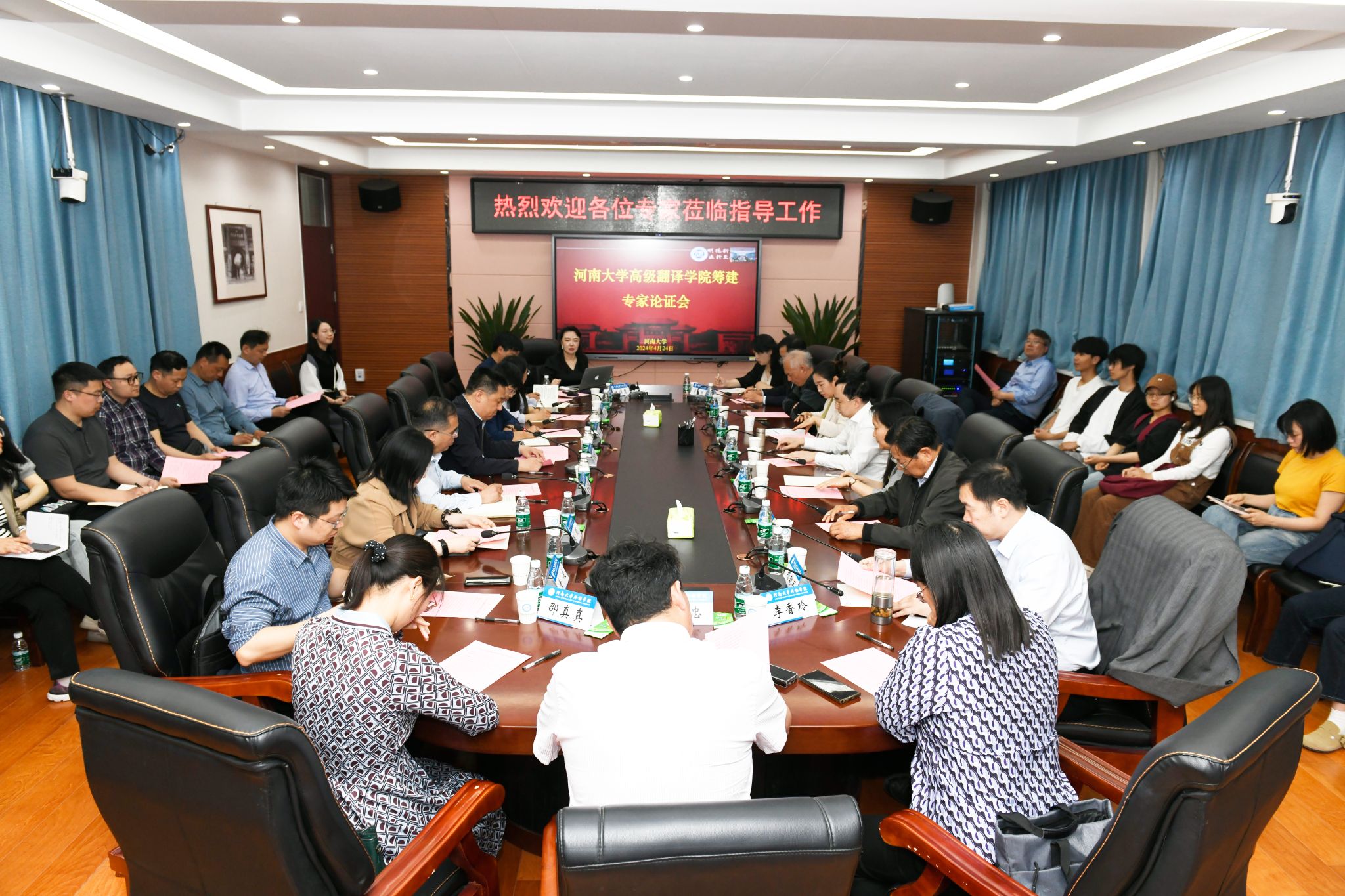 河南大学各职能部门和国际汉学院的负责人先后发言,表达了对高级翻译学院筹建的肯定和支持。