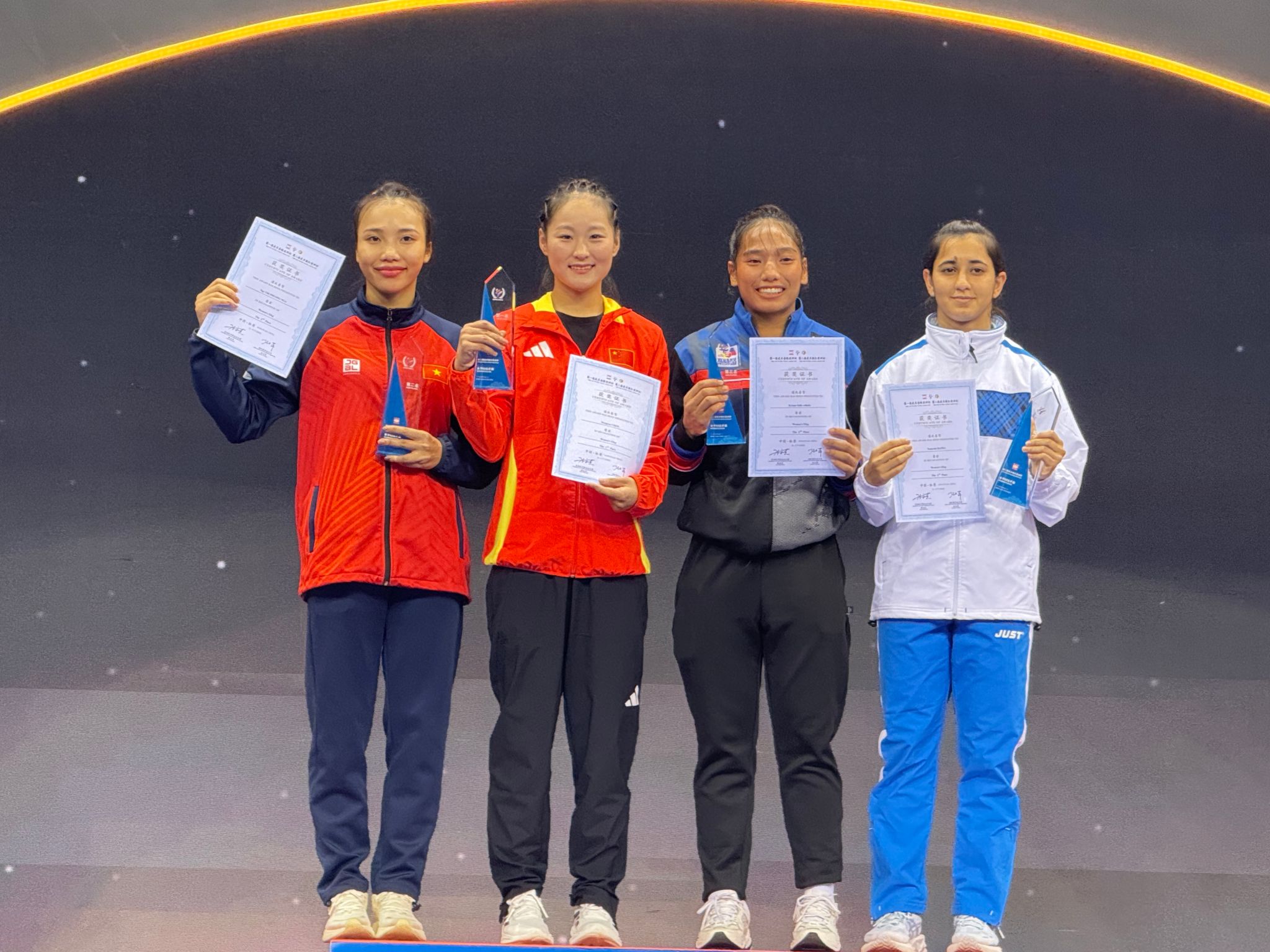 本次比赛中,我校校友、武术学院2018级本科毕业生陈梦粤在女子52公斤级较量中,敢打敢拼,充分发挥自身优势,力克强敌,将冠军奖牌收入囊中。对于拥有世锦赛、世界杯等多项重量级冠军头衔的陈梦粤来说,现在距离“大满贯”仅差亚运会和全运会两个冠军。