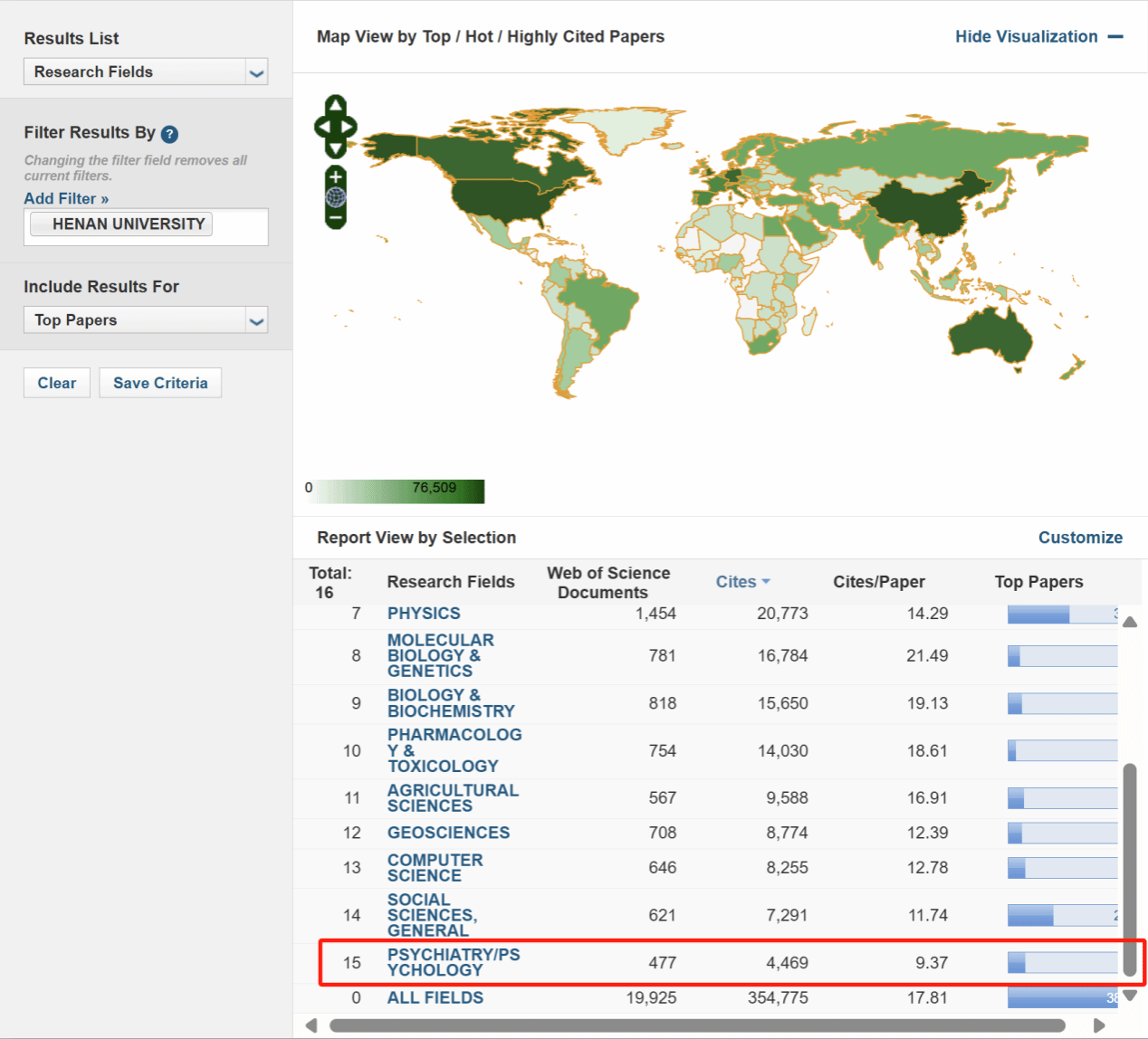 本次全球共有9616个机构进入世界前1%,其中中国大陆共有495所高校进入ESI前1%。目前河南大学位列全球第822位,较上期排名提升5位,内地高校第95位。学校共发表论文19925篇,其中高被引论文378篇,热点论文17篇,总被引频次达354775次,各项数据稳定上升。至此,我校已有15个学科进入ESI全球前1%,自第二轮“双一流”建设以来新增9个学科,其中化学、植物学与动物学、材料科学等三个学科进入ESI前2‰。
