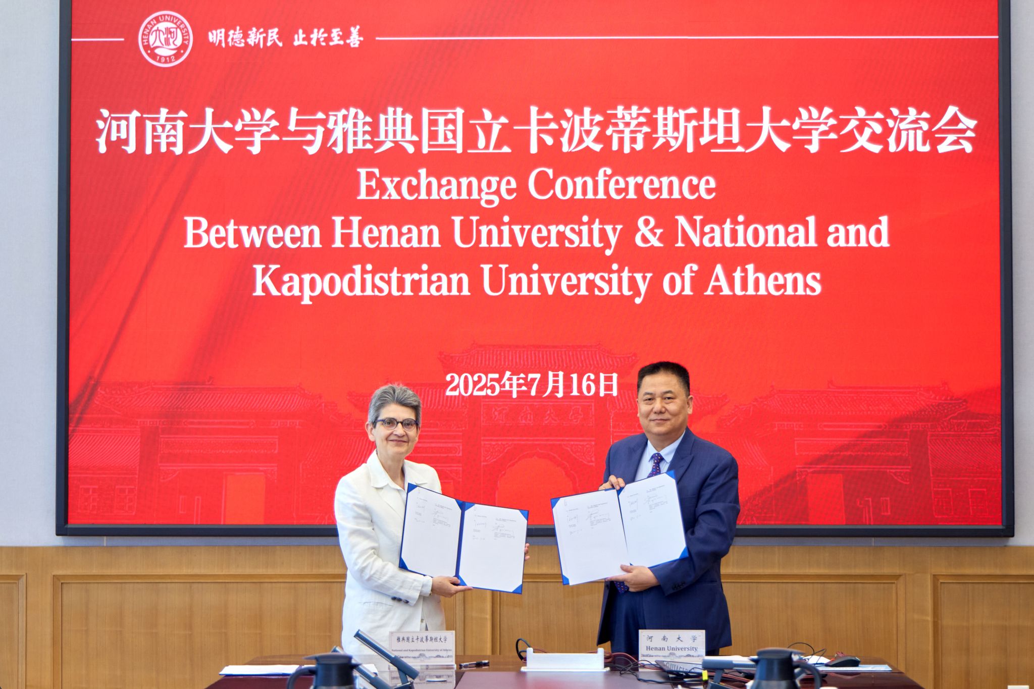 索菲亚·帕皮奥安努对河南大学表示感谢,并介绍了雅典国立卡波蒂斯坦大学的发展历程和现状。她表示,雅典国立卡波蒂斯坦大学拥有创新的科研能力和国际化的视野,致力于推动全球教育合作。她希望今后与河南大学携手,充分发挥双方学科优势,共同探索人才培养新模式。