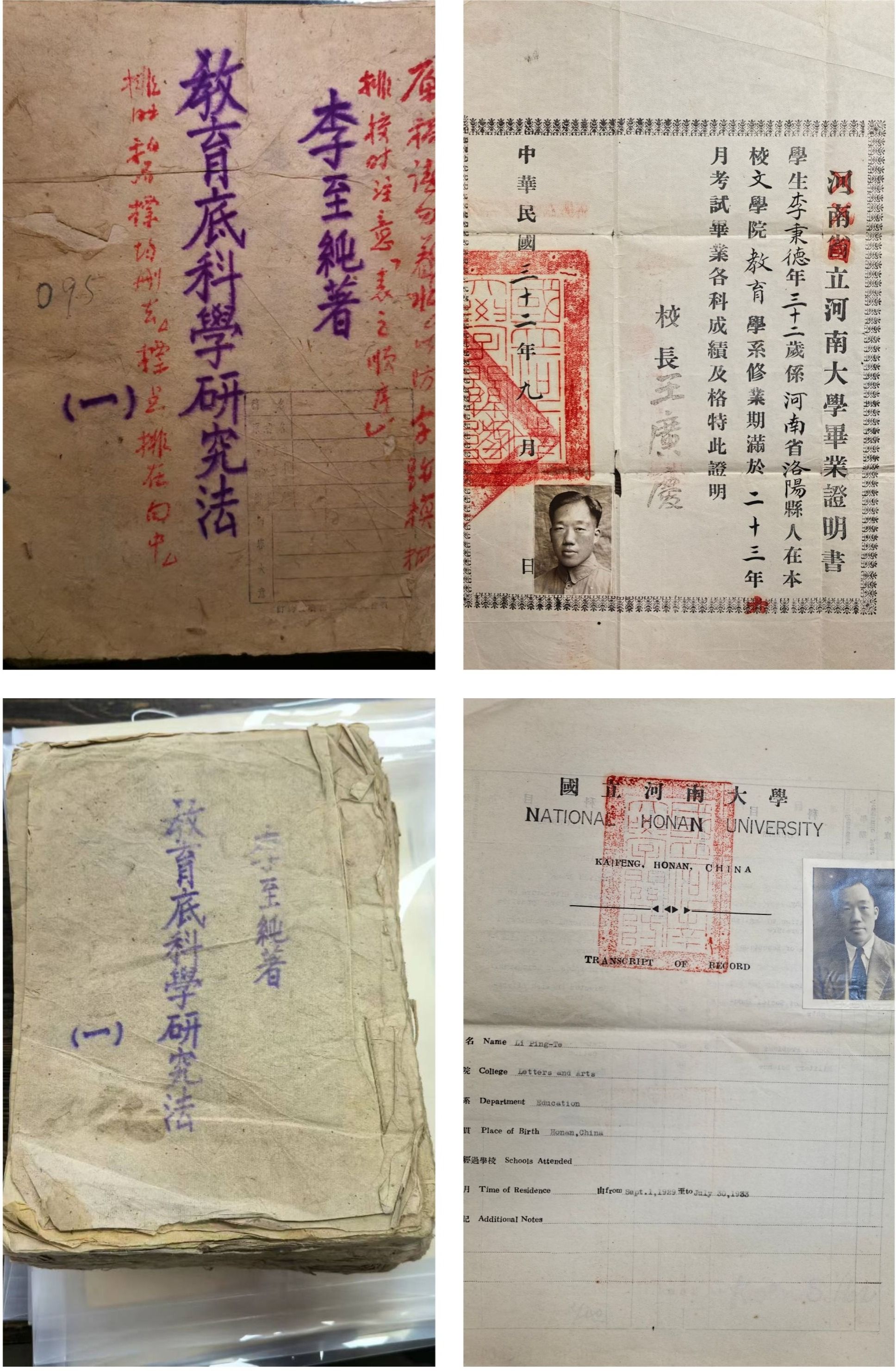 仪式上,李秉德先生之子、原民盟中央副主席李重庵,李秉德先生之女、原中央民族大学教授李璇作为捐赠人代表进行捐赠。此次捐赠的书稿档案共有五件:一是李秉德《教育底科学研究法》著作出版清样稿(手抄稿)一部4册(河大抗战办学期间李秉德先生笔耕不辍手稿);二是李至纯(李秉德先生,字至纯)与中华书局签订的《教育底科学研究法》出版《著作权共有契约》一件;三是李秉德的《国立河南大学毕业证明书》;四是国立河南大学成绩单(英文)(郑效兰,李秉德先生夫人)一件;五是国立河南大学成绩单(英文)(李秉德)一件。