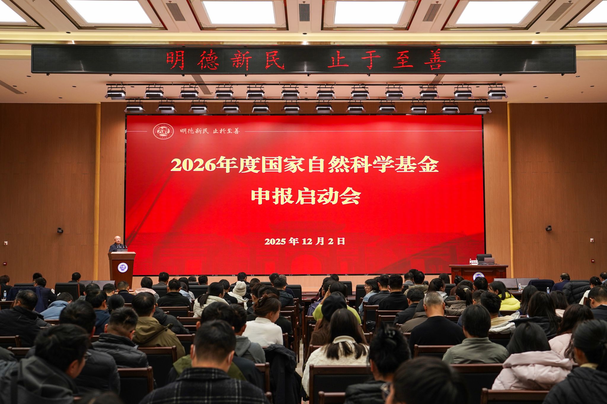 启动会上,校长张锁江作动员讲话。他指出,党的二十届四中全会明确提出“建设现代化产业体系”“大幅提升科技自立自强水平”,作为国家“双一流”、河南“双航母”建设高校,河南大学必须勇担教育科技人才一体发展的重要使命,在中国式现代化建设进程中主动担当作为,积极申报国家自然科学基金正是河大人“思国家需、做国家事、担国家责”的重要一环。他表示,要深刻认识国家自然科学基金的战略地位,它不仅是衡量学校科研实力、学科建设能力、科技创新水平的重要指标,也是衡量教师个人科研水平的重要标志,还是产出高层次人才、重大项目及重大标志性成果的“先导工程”。他强调,要高度重视此次申报,从学校到科研单位再到申报个人,都要精心谋划、周密组织,着力提升申报成功率;要紧密对接国家战略和科技前沿,明确研究方向,找准科学问题,凝练高水平申报课题;要通过不断学习、有效交流、认真打磨,着力提升申报书质量;要锚定奋斗目标,保持定力和韧劲,坚定地相信功到必成;同时也要加强科研诚信建设,坚决杜绝学术不端行为的出现。