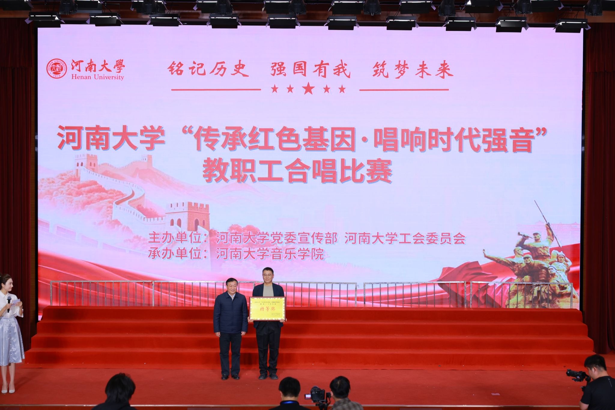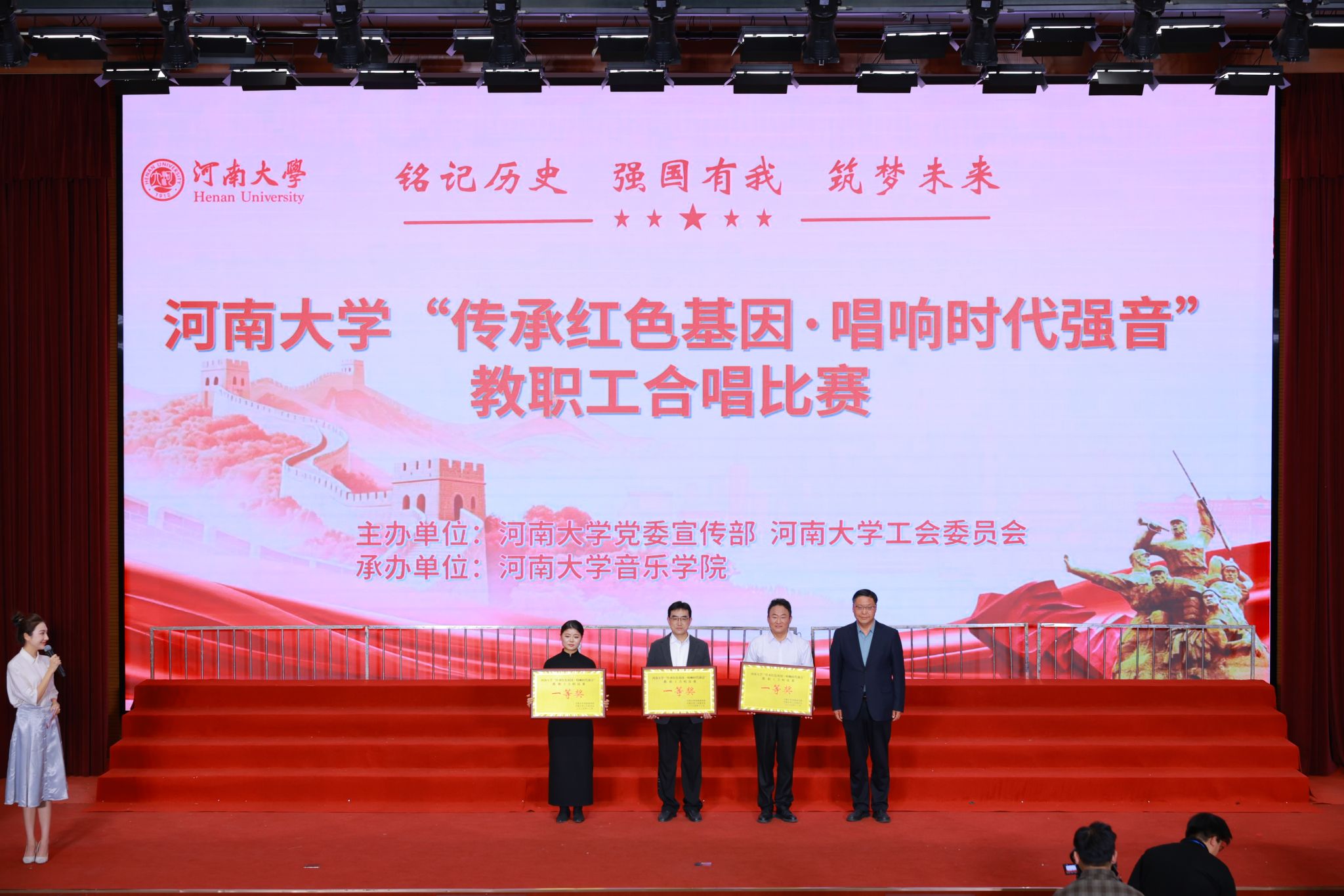 经过激烈角逐,最终评选出各类奖项。河南戏剧学院、河南大学附属中学荣获特等奖,哲学与公共管理学院、机关、生命科学学院获得一等奖,地理科学学院等6个单位获得二等奖,河南大学出版社等18个单位获得三等奖。校党委副书记李平,校党委副书记、工会主席杨萌芽,校纪委书记赵晓军等分别为获奖队伍颁奖。
