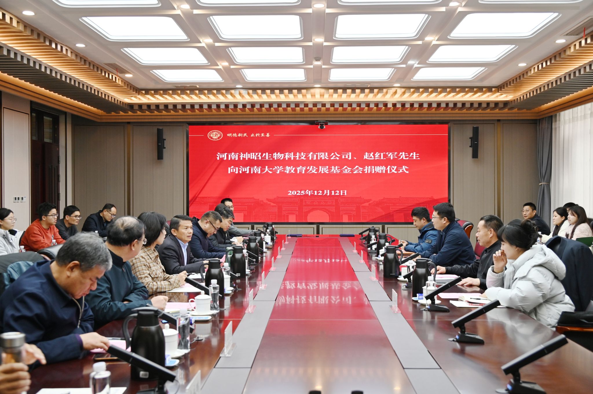 12月12日下午,河南神昭生物科技有限公司、赵红军先生(个人)捐赠仪式在郑州龙子湖校区友兰学堂中楼305会议室举行。河南神昭生物科技有限公司副总经理祖士江、采购总监谷庆民,个人捐赠代表赵红军,校党委书记季波,副校长、校友与教育发展基金工作部部长乔梁,教育发展基金会秘书长刘婷及研究生院、生命科学学院相关人员参加活动。仪式由生命科学学院党委书记梁建忠主持。