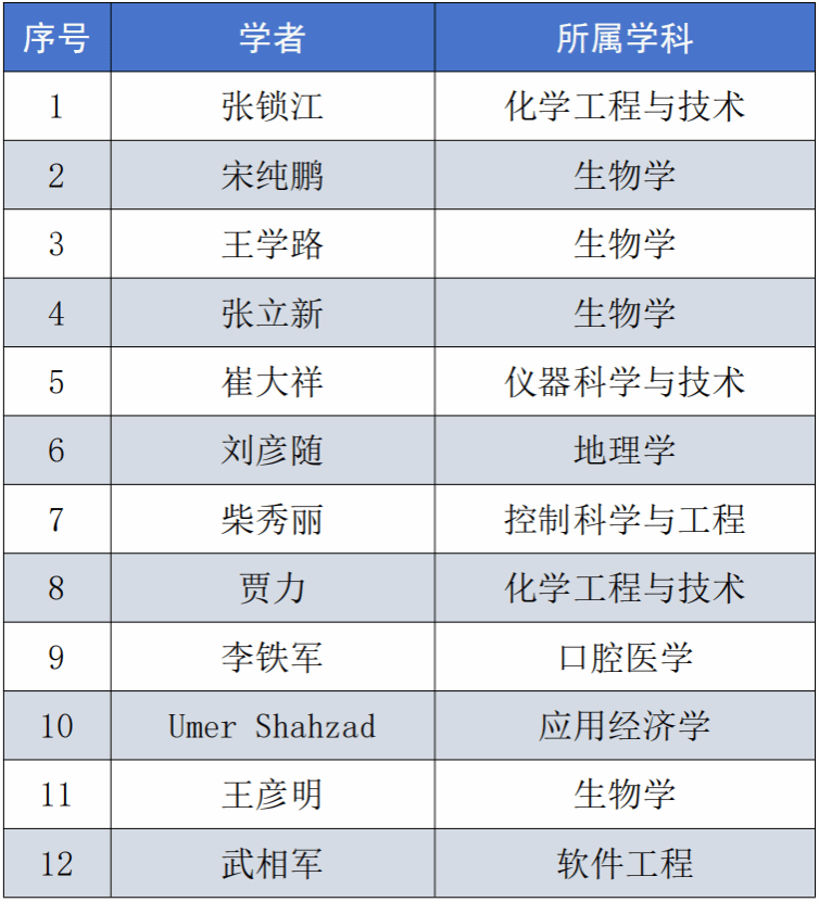 ⚫ 在榜单统计的上述学者(第一作者或通讯作者文献)需要满足:被收录文献数一篇以上(不含);被收录文献的总被引次数达到本学科阈值条件;至少有一篇全球前1%高被引文献,或学者作为第一作者或通讯作者发文整体FWCI(Field-Weighted Citation Impact,领域归一化引文影响力)高于1。