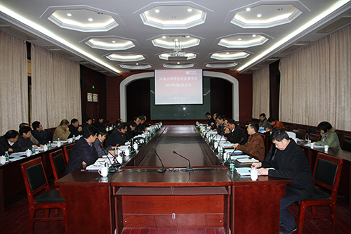 2014年12月31日,河南大学学位评定委员会2014年第2次会议在明伦校区小礼堂召开。校学位评定委员会主席、校长娄源功,校学位评定委员会副主席、常务副校长赵国祥,校学位评定委员会副主席、副校长宋纯鹏、刘志军出席会议。会议由娄源功主持。