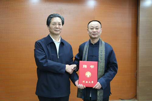 12月18日下午,国实基金董事局主席、ICP商业模型权利著作人赵旭一行来校访问。校长娄源功、副校长张宝明及党政办、文学院等单位负责人在金明校区行政楼二楼会议室热情接待了赵旭一行。