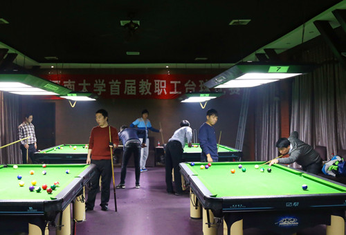 12月6日,由河南大学工会主办,河南大学教职工台球协会承办的河南大学首届教职工台球比赛在嗨⑧撞球会所举行,来自全校各个单位的三十多名教职工选手参加了比赛。