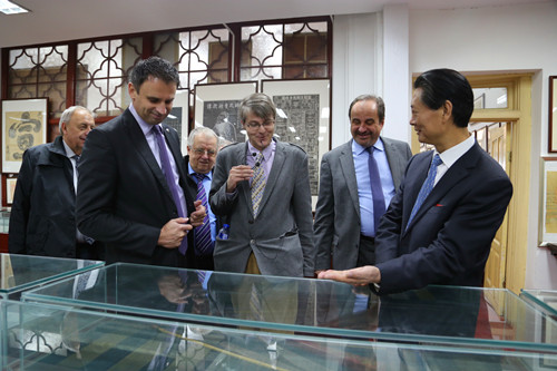 在娄源功的陪同下,奇莫拉州长一行先后参观了古代科举书院文化展、文物馆、明伦校区近代建筑群等,双方还在大礼堂前合影留念。在金明校区,代表团还参观了特种功能材料重点实验室,并来到捷克马萨里克大学地理系米兰教授位于环境与规划学院的工作室进行了参观。