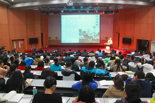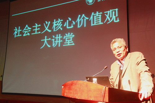 报告会紧紧围绕社会主义核心价值观中的“爱国”主题,从历史的视角剖析了中国当代难题,用客观事实和历史规律,直接回应了中国青年思想深处的困惑与迷茫。讲课过程中,马教授不时穿插着手势,风格亦庄亦谐,亦开亦合,睿智的语言一次次打开同学们心底的疑惑,生动的事实不断唤起师生们深深的思考。