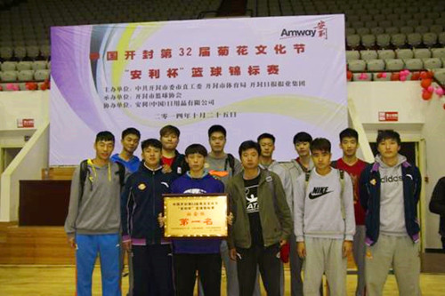 11月2日晚上,中国开封第32届菊花文化节“安利杯”篮球锦标赛总决赛在开封市体校篮球馆落下战幕。我校男篮最终以35:30击败宏大投资男篮,获得社会组的冠军。