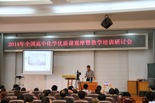 据了解,由中国教育学会化学教学专业委员会举办的全国高中化学优质课观摩暨教学改革研讨会是每四年一次全国性的化学教育教学交流盛会。此次高中化学优质课展示活动有现场课例展示、说课和微课展示三种形式,来自各省市的31位教师参加了高中化学教学课例展示,61位教师参加了说课展示和数百位教师参加了微课展示,吸引了全国近2000名专家、学者、骨干教师与会观摩。