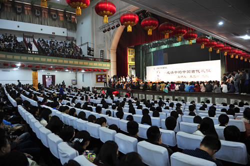 王立群教授国学功底深厚,语言睿智幽默,深入浅出,化繁为简,既概括了中国古代礼仪知识,也更正了大家对一些成语认识上的误区,让学生享受到一场精神盛宴。