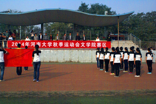 10月18日,在青春激昂的音乐中我校2014年秋季运动会文学院赛区开幕,校体育运动委员会副主任、公共体育教研部主任洪浩,文学院党委书记葛本成、院长李伟昉等相关领导出席开幕式。由此也拉开了我校2014年秋季运动会的序幕。