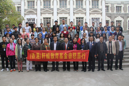 10月13日上午,香港轩辕教育基金会主席罗文春、秘书长孔敏庄携基金会荣誉会长、善长一行八人来校,在明伦校区小礼堂举行 “种子助学基金”捐资助学仪式。校党委常务副书记梁晓夏接待了来访客人,并与来宾及受助学生合影留念,党委统战部、学生处、教育发展基金会及开封市外侨办负责同志参加捐资仪式。仪式由党委统战部副部长史富强主持。