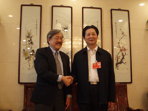 3月5日上午,河南省教育厅厅长助理荣西海在郑州会见了James Tien一行,代表省教育厅向来宾表示欢迎,介绍了我省高等教育现状和发展规划,并进一步强调了两校合作办学的重要意义,表示省教育厅将大力支持本次合作项目的顺利开展。James Tien一行还参观了我校龙子湖校区。