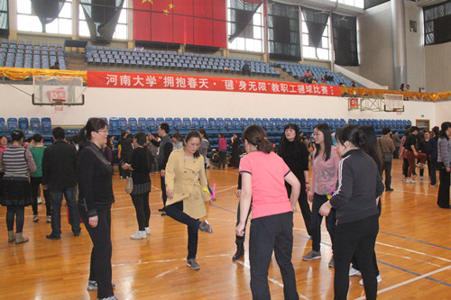 2013年3月8日下午,为庆祝“三八”国际劳动妇女节,由校工会主办、公共体育教研部承办的“拥抱春天,‘毽’身无限”教职工毽球比赛在体育馆举行。校党委副书记王凌、校工会主席朱恒宽及相关单位负责人出席本次活动。活动开幕式由校工会副主席宋菊芳主持。