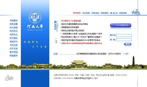 据悉,河南大学网站建立于2001年,由河南大学党委宣传部网页编辑部制作、管理,网络信息中心提供技术支持和硬件服务,是河南大学对外发布信息的唯一官方网络平台,是对外展示河南大学形象的窗口。自建立以来,为适应高校网络宣传形势的发展,先后三次对河南大学网站进行改版,通过网络媒介对外宣传介绍河南大学发展战略、政策方针,全面展示河南大学的历史沿革、招生就业、文化氛围和科教优势,成为国内外第一时间了解河南大学信息的主渠道。河南大学网站建设一直处于河南省高校网站领先地位,此前还曾荣获“2010年度全省高等学校优秀门户网站”。此次优异成绩的取得,进一步促进了我校网络建设工作,既是上级部门对我校网络信息建设工作的肯定,也是对我校网络信息建设工作提出的新的更高要求。
