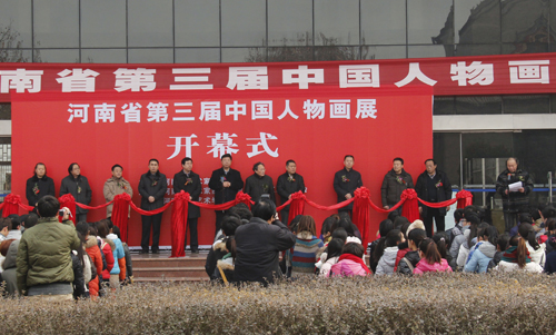 2013年1月9日上午,由河南省美术家协会主办,省美协中国人物画艺委会、河南大学艺术学院承办的“河南省第三届中国人物画展”在我校艺术学院一、二楼展厅举办。河南省文联主席、省美协主席马国强,开封市副市长、省美协副主席陈国桢,华北水利水电学院副校长石品,河南大学副校长刘志军,省美协顾问丁中一,省美协副主席兼秘书长刘杰,省书协副主席、艺术学院院长赵振乾,省美协中国人物画艺委会主任袁汝波等出席开幕式并剪彩,开幕式由艺术学院副院长李建设主持。