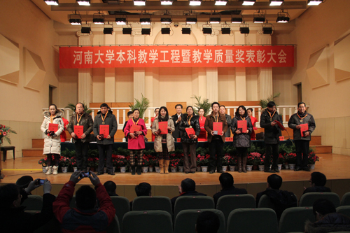 2013年1月6日上午,河南大学本科质量工程暨教学质量奖表彰大会在艺术学院音乐厅举行。获得2011年、2012年度河南大学本科质量工程暨教学质量奖的单位和个人获得了表彰。校领导娄源功、赵国祥、王凌、宋纯鹏、刘志军出席会议。会议由副校长刘志军主持。