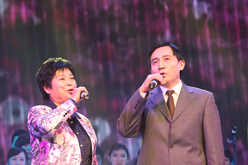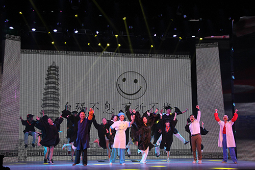 今天的晚会上,校党委书记关爱和、校长娄源功等全体校党政领导班子成员再次一展歌喉。但与往年不同的是,今年和校领导一起演唱的是来自各学院的学生代表。大家一起演唱了《江山》、《爱在百年》两首歌曲。“风吹了,雪飘了,爱已生根了;风停了,雪化了,爱已发芽了。来了,去了,爱已开花了……”歌曲委婉动听,令人动情,表达了师生们对百年河大的深情祝福。