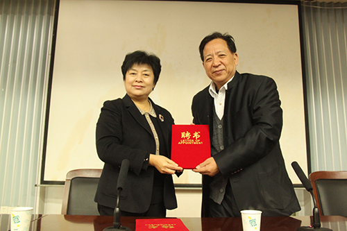 王凌向郑彦英颁发了兼职教授证书。她说,大雪预示着来年的祥瑞,郑彦英在百忙之中冒雪来到河南大学为文学院的同学作报告,给了同学们一个很好的学习机会。她希望大家能够利用好这次机会,通过跟名家的交流来提升自身水平,她也希望郑彦英的受聘能够为我校高水平大学的建设和中文学科的发展起到积极的促进作用。