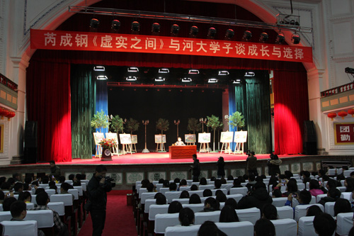 2012年11月23日晚,央视主播芮成钢做客我校,以‘成长·选择’为主题在大礼堂为我校近两千名学子做了一场精彩的报告并在现场与师生互动交流。报告会由学生处处长周保平主持。