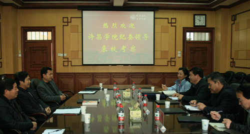 11月21日上午,许昌学院纪委书记杨德岭一行四人,来我校就贯彻执行“三重一大”和加强制度建设等进行考察交流。我校纪委书记雷霆,校纪委、监察处有关负责同志热情接待了客人。