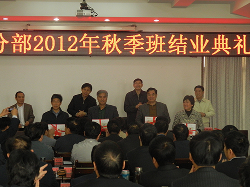 2012年11月1日上午,河南省干部教育培训中心河南大学分部秋季班结业典礼在干部培训中心举行。省委组织部干部教育处副处长张英利、校党委书记关爱和出席,第10期市厅级干部研修班、第17期县处级干部进修班学员及干部培训中心有关同志参加结业典礼。