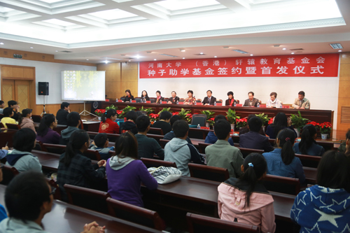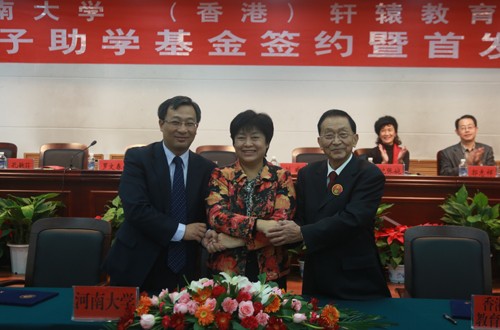 轩辕教育基金会从今年起未来四年向我校捐赠种子助学基金60万元人民币,仪式上,王凌代表我校与香港轩辕教育基金会和开封市人民政府外事侨务办公室签约,并向基金会主席罗文春颁发了捐赠纪念杯。党委统战部副部长姜捷宣读了受助学生名单。据悉,今年我校共50名困难学子获得了资助,资助金额15万元。