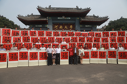 柳国庆先生说,河大历史悠久,文化底蕴深厚,为中华文明传承、经济社会发展和中原经济崛起做出了巨大贡献。作为一个艺术家、一个河南人,他时刻关注着河南大学的发展。这次为河南大学赠送的100幅“福”字,是他冒着酷暑,推掉了一切社会活动,闭门潜心,饱含真情的作品。