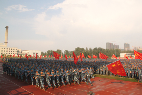 高小燕和王旭在讲话中高度赞扬了同学们在军训中的表现,并对同学们取得的成果表示祝贺。他们希望同学们能够珍惜此次的军训经历,把从中学到的吃苦耐劳、团结互助、坚忍不拔等精神保持到今后的学习生活中去。增长才干、强健体魄,为祖国的建设做出自己应有的贡献。并在中秋和国庆双节来临之际,衷心祝愿同学们节日快乐。新生代表向军训教官们表达了感谢,并表示将牢牢记住当代大学生的使命和责任,努力学习,回报社会和母校。