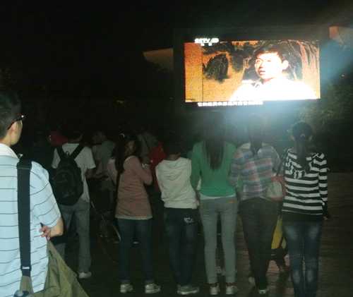 为庆祝我校百年校庆,9月16日晚20:40,由中央电视台历时五个月拍摄制作的我校校史纪录片《烽火育才记》在CCTV-10《探索发现》栏目播出。我校师生通过电视、互联网及校园大屏幕纷纷收看。晚8点30分,校党委副书记王凌、副校长刘志军等领导来到校园,和大家一起在明伦校区大礼堂广场和金明校区马可广场通过校园LED大屏幕观看了该片的转播。
