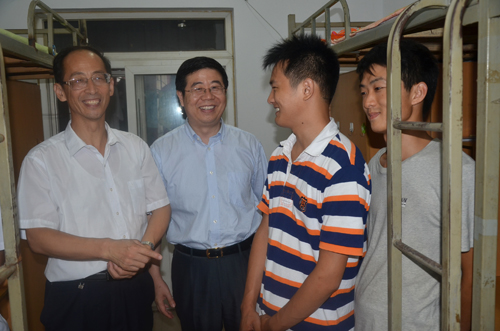为进一步了解新生入学住宿情况,2012年9月2日晚,校领导带领学校有关部门负责同志,分别深入到明伦校区和金明校区学生宿舍,亲切慰问了2012级新生。
