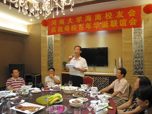 关学增发表了热情洋溢的讲话。他首先代表学校向海南校友们问好,向校友们取得的优异成绩表示祝贺。随后,他向校友们介绍了母校近年来的发展情况,并就学校在教学、科研、学科建设、办学筹资渠道拓展和基础建设等各方面取得的骄人成绩,向校友们做了通报。关学增说,当前河南大学的发展被列入国家发展战略,被提高到前所未有的高度,省政府也出台了《百年名校河南大学振兴计划》,母校迎来了百年不遇的跨越式发展的重大机遇。校内教职工生团结进取,满怀干事创业的奋斗激情。良好的内外部环境,使我们坚信,河南大学的明天一定更美好。时值百年校庆,关学增热情邀请海南校友们届时返校,共襄盛举。