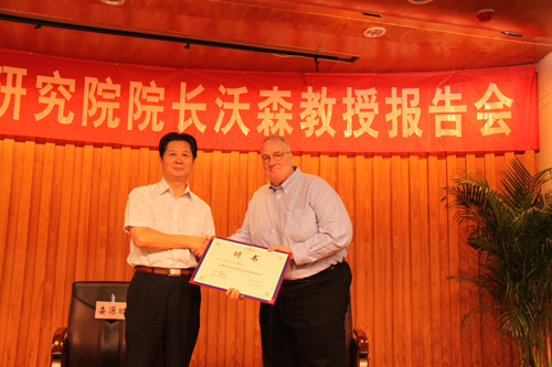报告会开始前,校长娄源功为沃森先生颁发了河南大学客座教授聘任证书。