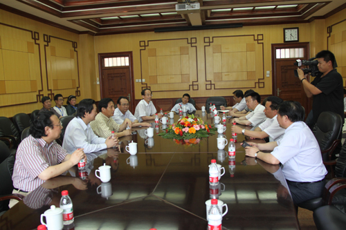 2012年6月14日下午,开封市市长吉炳伟带领副市长王学杰、市政协副主席李利塔、市政府秘书长贺全营及有关职能部门负责人,来到我校周边环境综合整治现场检查指导工作。检查结束后,校领导关爱和、娄源功、赵国祥、关学增、邢勇及学校相关部门负责同志与吉炳伟一行在新行政楼二楼会议室进行了座谈。