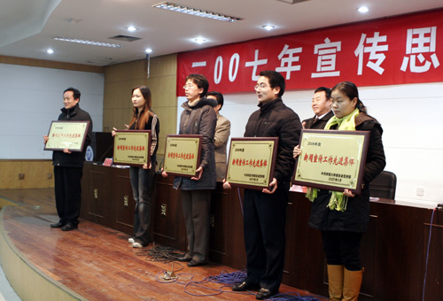 他强调,高校的发展已经由数量增长和规模扩张,迅速转变到对大学理念、制度和模式深刻变革的思索上来,更为注重科学、民主、创新、进步的软环境的培育和养成,高校宣传思想工作面临新的机遇和挑战。在这样的背景下,今年全校宣传思想工作要强化四个方面的工作:一、加强理论宣传教育,用马克思主义中国化的最新成果指导我校的发展和师生员工的思想建设。继续深入学习邓小平理论和“三个代表”重要思想,深入贯彻落实科学发展观和构建社会主义和谐社会的重大战略思想,在武装头脑、指导实践、推动工作上狠下功夫。二、加强思想政治教育,坚持以社会主义核心价值体系为根本推进思想道德建设,坚持马克思主义不动摇,用发展着的马克思主义指导实践,在校园形成兼容并包而又有思想共识,尊重差异而又齐心协力的良好氛围。在师生中牢固树立和大力弘扬有中国特色社会主义的共同理想,用共同的理想来凝聚人心、鼓舞人心,为构建和谐校园夯实思想基础。三、精神文明建设工作要进一步加强制度建设和队伍建设,深入开展以“三创两争一比”为主题的精神文明创建活动,不断总结经验,探索新形式,赋予新内容,建立精神文明建设长效工作机制,通过活动的开展增强凝聚力和创新力,为学校的创新发展提供精神动力。四、内外宣传工作要按照内聚人心、外树形象的工作思路,紧紧围绕学校的发展大局,根据不同媒体的特性,进一步挖掘潜力,彰显特色。继续加大宣传工作投入力度,强化宣传手段,完善工作机制,紧紧抓住各种有利契机,利用各种平台,精心组织和策划若干个重大宣传活动,充分展示我校教学、科研、管理、服务等各方面取得的新成就,充分展示全校教职员工团结奋进的良好精神风貌,为创建全国一流大学营造良好舆论环境。