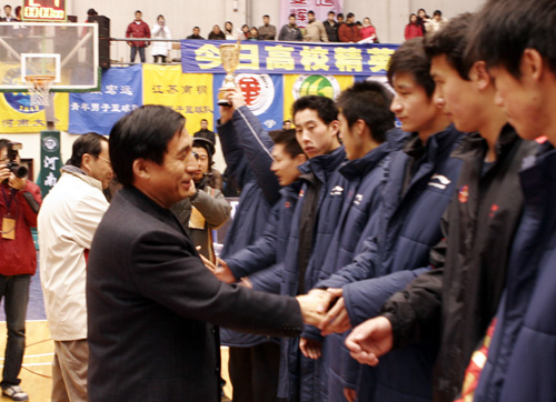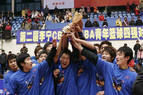 1月11日下午,当主裁判吹响决赛的终场哨,当太原理工主将魏明亮无力回天而黯然神伤,当华侨大学球员平静地收获自己的又一座冠军奖杯时,所有的悬念和谜底都一一揭晓。在这个激情四溢的冬日,CUBA“四冠王”华侨大学队以72:65击败“西北王”太原理工大学队,以不败战绩加冕第二届李宁CBA-CUBA青年篮球四强对抗赛“王中王”。中国篮协官员、大赛组委会有关负责人,太原理工、华侨大学等兄弟院校领导以及河南大学党政领导班子全体成员与3000余名热情洋溢的观众一同观看了比赛。中央电视台第五套节目对赛事进行了现场直播。