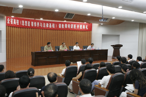 2006年8月21日上午,全省高校《思想道德修养与法律基础》课教师培训班开班典礼在金明校区行政楼二楼报告厅举行,来自全省高校近300名《思想道德修养与法律基础》课教师将接受培训。校党委副书记黄亚彬代表学校党委和行政致欢迎辞,并向与会人员介绍了我校辉煌的历史、奋进的现状和美好的前景。省委高校工委副书记、省教育厅副厅长訾新建作了重要讲话。省委高校工委、省教育厅社政处处长陈垠亭,我校党委宣传部、马列德育部负责人等参加了开班典礼。典礼仪式由副校级调研员孟庆琦主持。