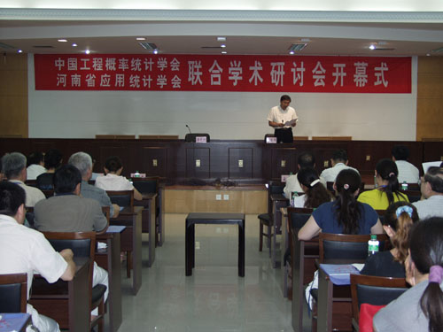中国工程概率统计学会和河南省应用统计学会2006年联合学术研讨会于8月12号至8月14号在我校举行。12号上午,开幕式在我校明伦校区新办公楼第4会议室隆重举行。副校长宋纯鹏出席并致辞。会议由数学与信息科学学院李起升院长主持。