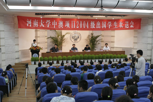 经过两年在国际教育学院的学习,我校60余名2004级中澳项目学生近日将踏上赴澳留学的路程。6月27日,赴澳留学欢送会在科技馆二楼报告厅举行。校领导宋纯鹏、王发曾,以及党委宣传部、国际交流处、学生处、校团委、教务处等部门有关负责人和国际教育学院的师生参加了欢送会。